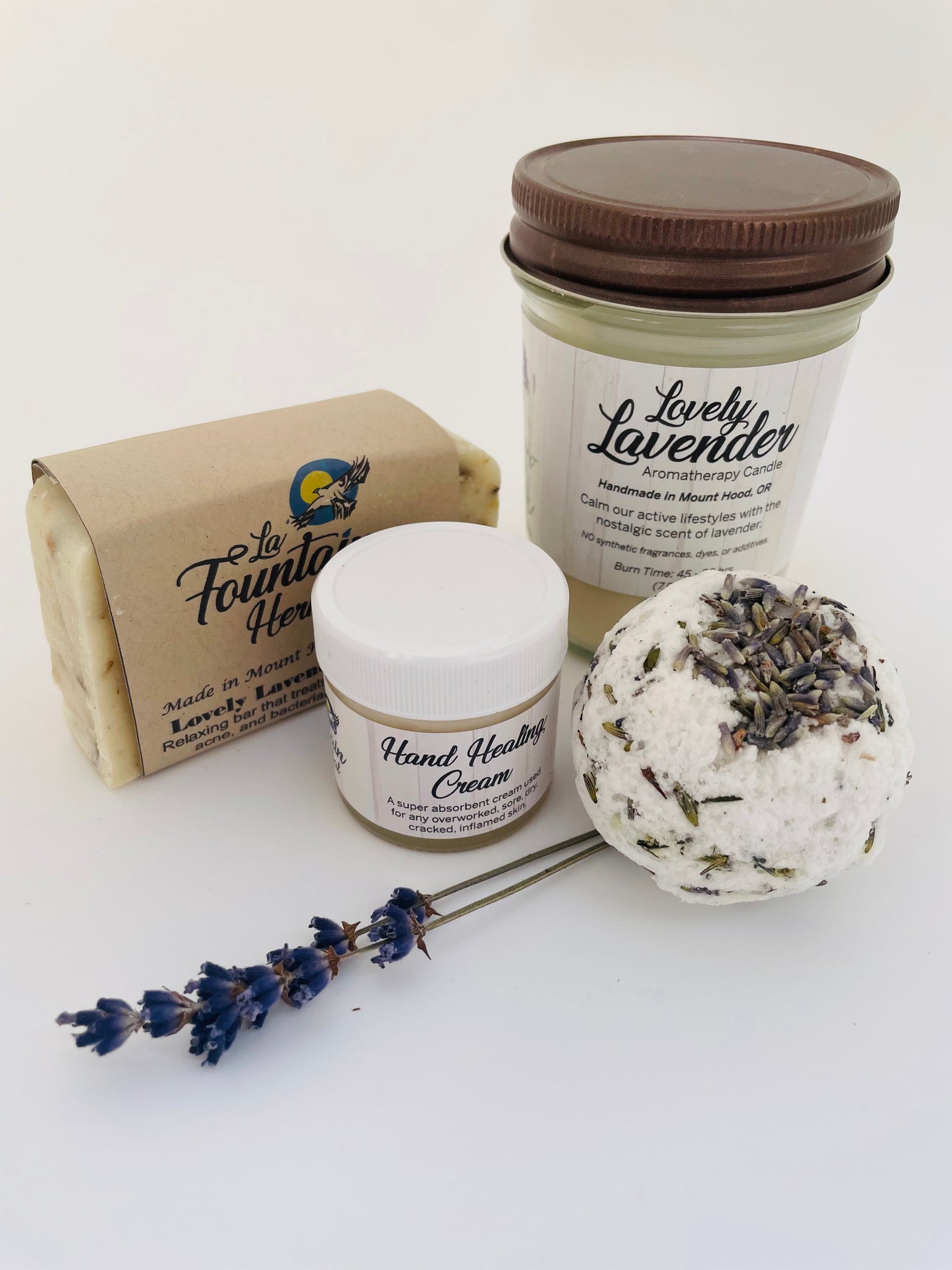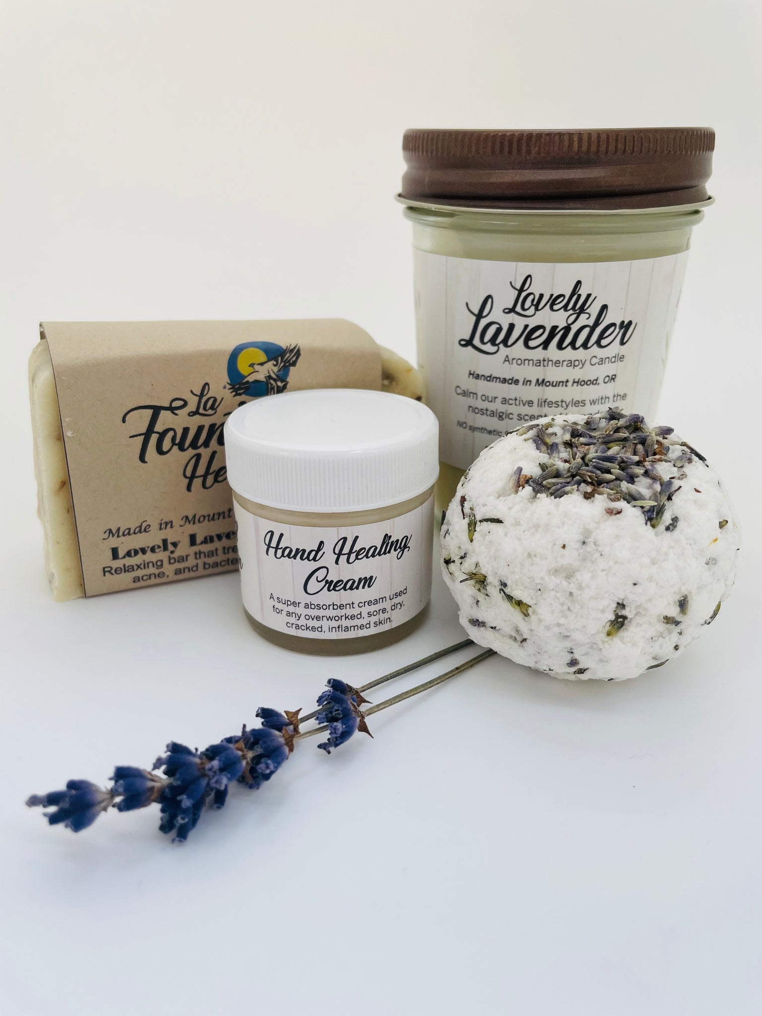 The ultimate spa gift set for relaxation and rejuvenation (R&R). Deeply hydrating lavender bath bomb is an indulgent bath soak to moisturize leaving the skin silky soft. The lavender candle (45-50 burn time) pure essential oil fills the air and carries away those troubles. Soothing lavender bar and lavender vanilla hand cream (1oz) complete the ultimate spa package. Perfect for any special occasion or some self-care!