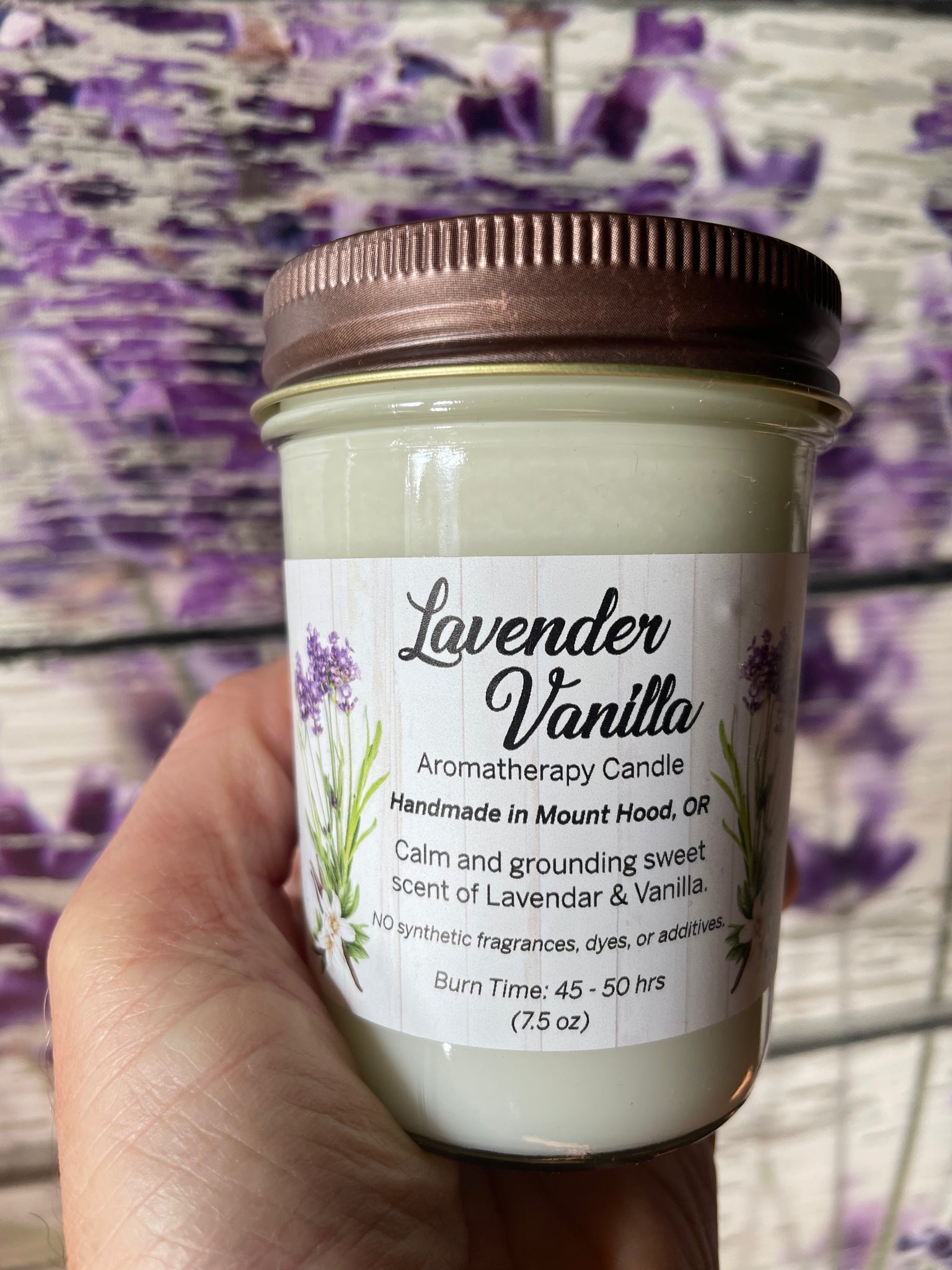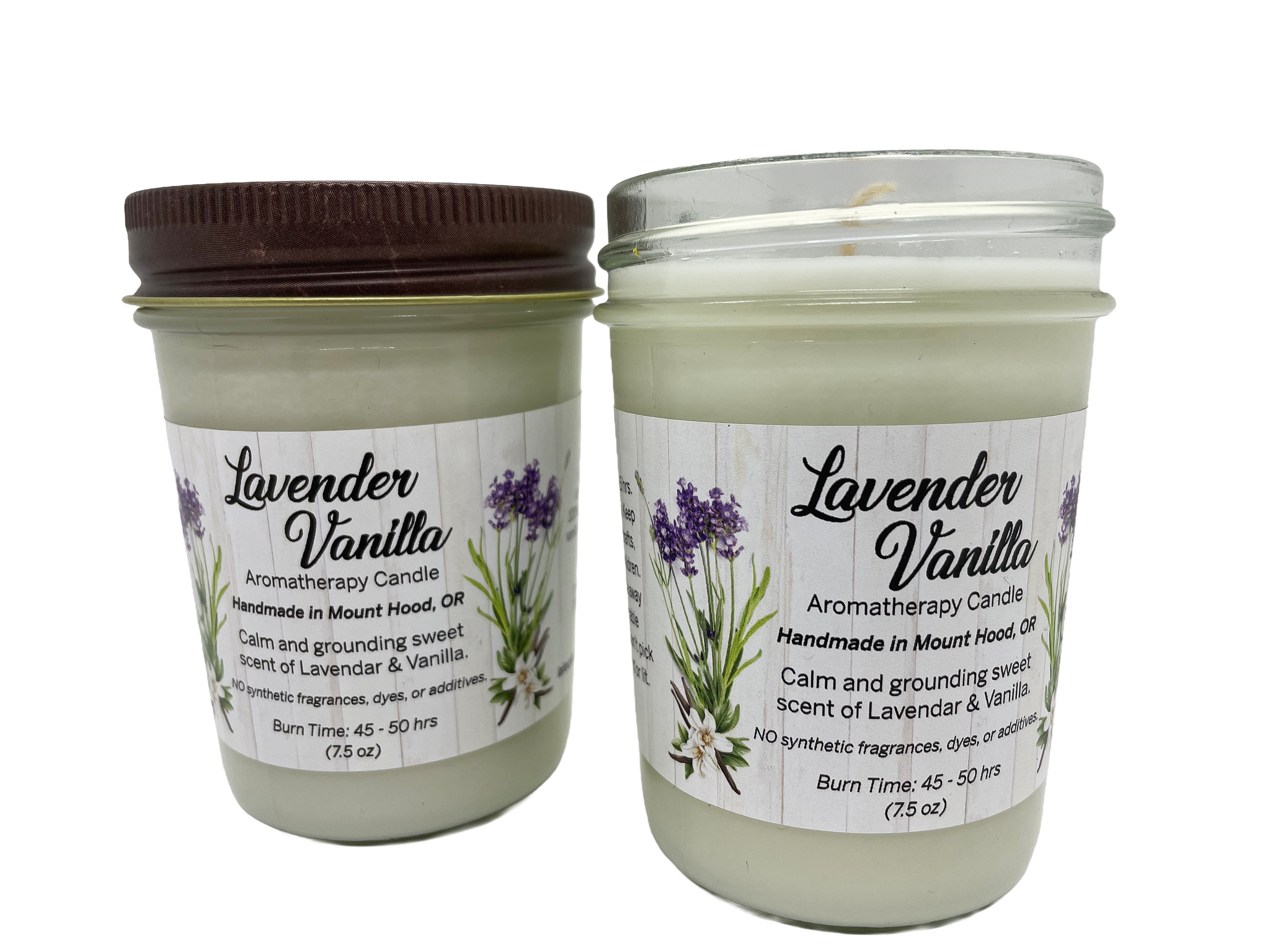 Calm & grounding sweet scent of lavender & vanilla to set the mood.  About Our Aromatherapy Candles: 100% Natural Soy (Grown in U.S) Cotton Wick 100% Pure Essential Oils Free of Synthetic Fragrances No Dyes No Additives Labels...Read more