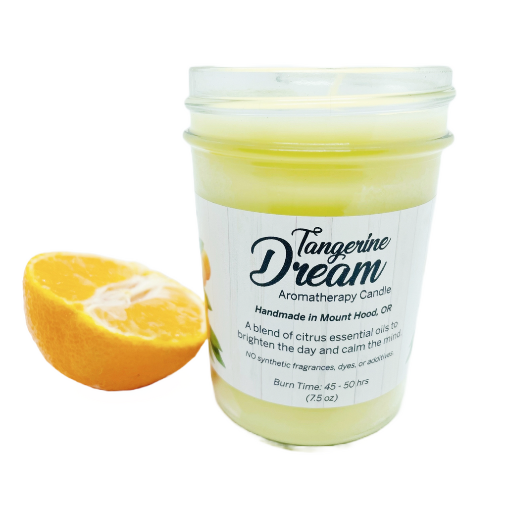 Hand-poured aromatherapy candles scented with items found in nature- no synthetic fragrances here - always 100% essential oils! Each natural soy candle burns for about 45 -50 hours. 100% US-grown natural soy, cotton wick and no dyes or additives.