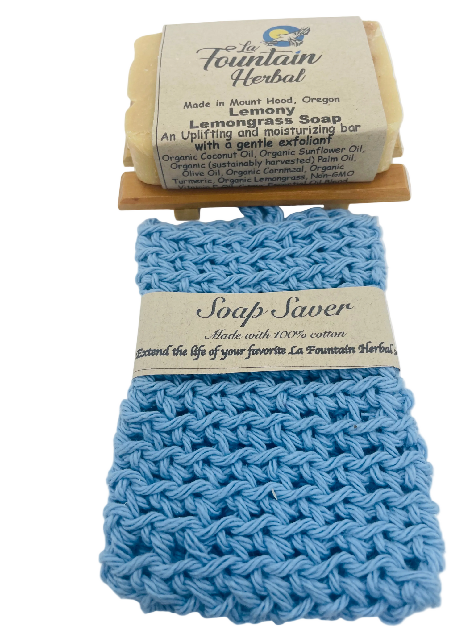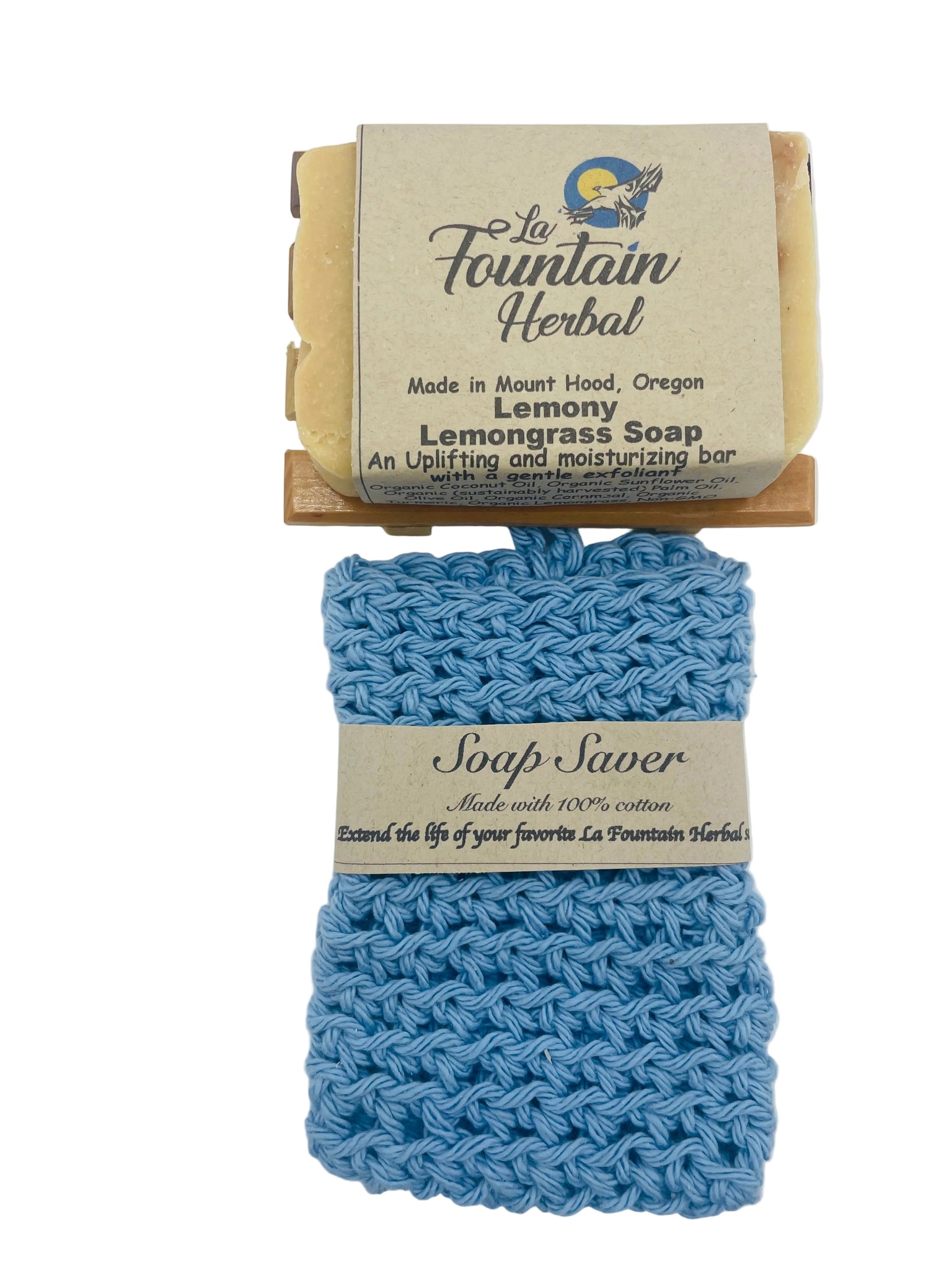Soft natural soap savers & holders to the rescue for easier handling when bars reach a smaller size. Collect the bits of bars that get a bit slippery to handle toss in a soap saver and scrub away. Each soap saver has a loop to simply hang up to dry between bathing.