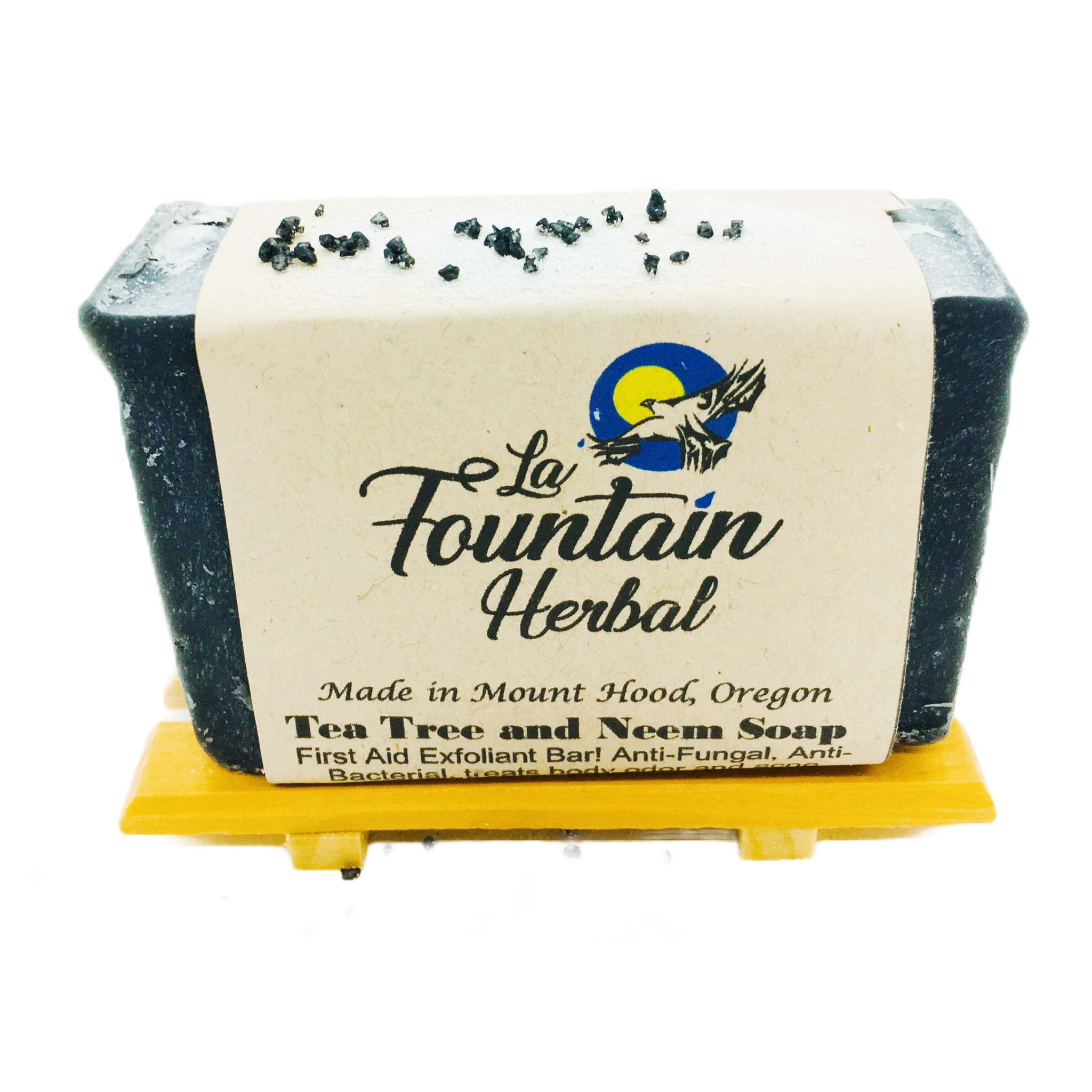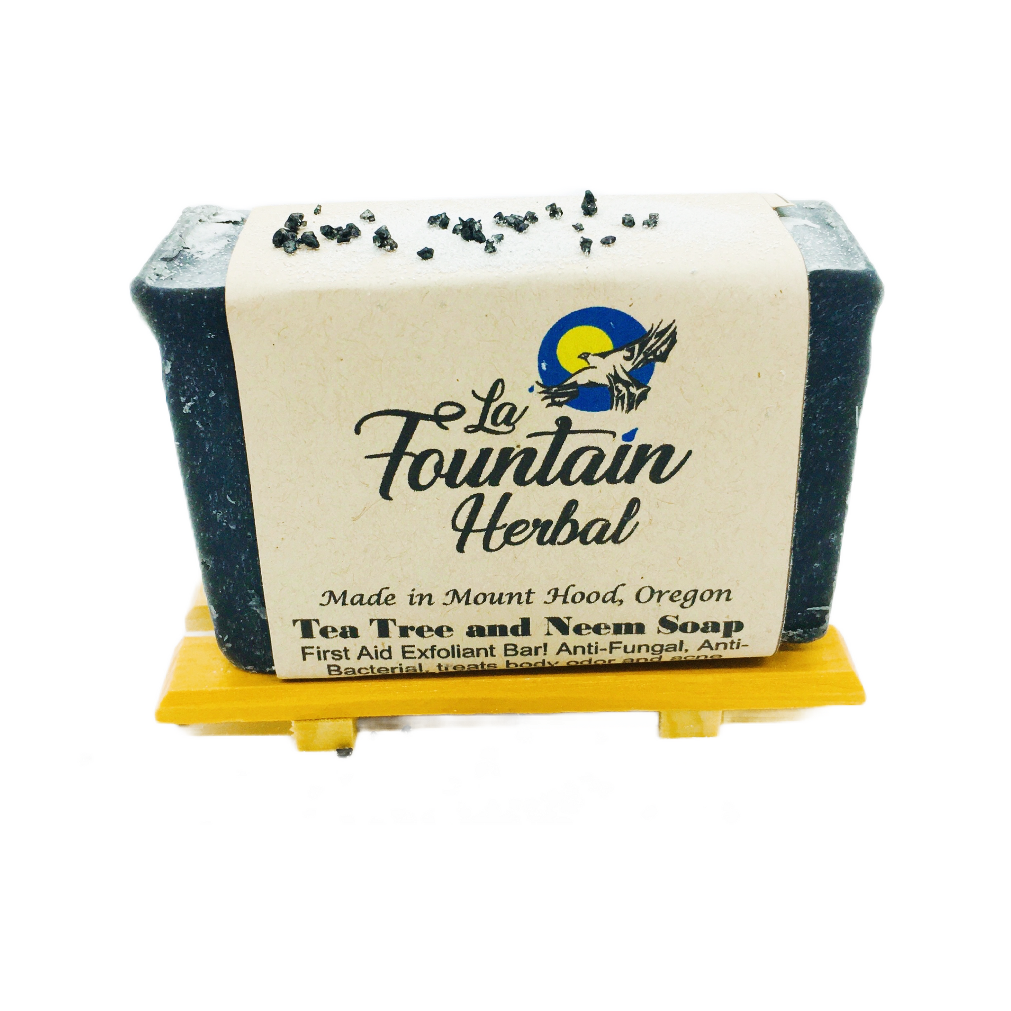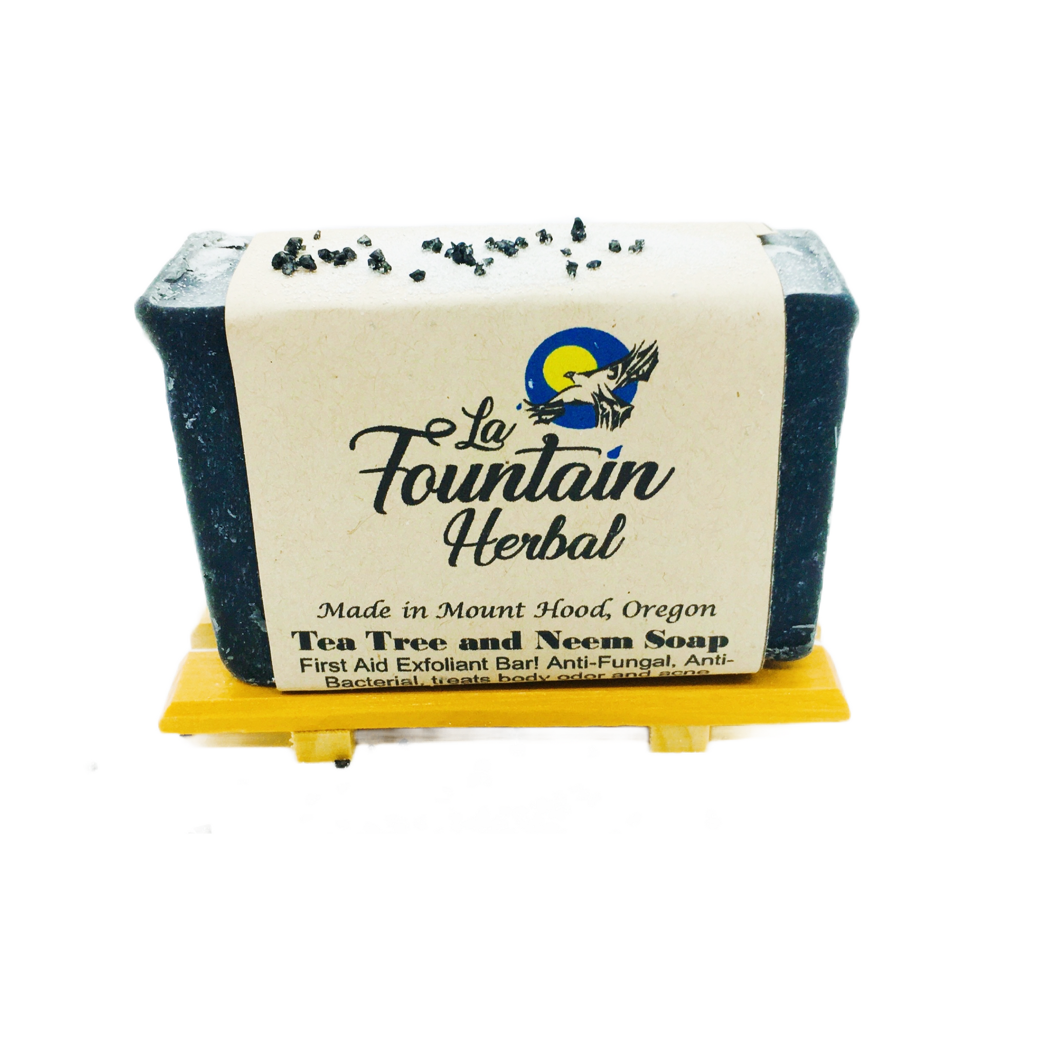 Tea tree and neem are well known anti-fungals. The microbial property of tea tree oil soap reduces body odor and has been known to reduce acne. Black lava salts added as a skin detox. On the skin neem has been known to sooth eczema, dry skin, dandruff, sores, burns, or lacerations.